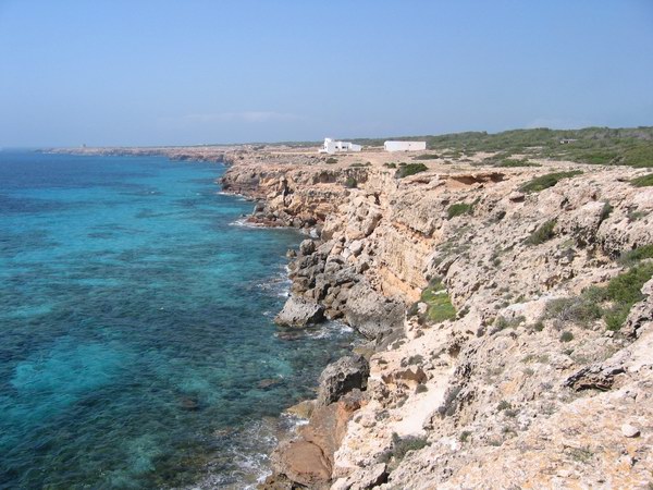 Den Wehrturm im Rücken in Richtung Cala Saona blickend. Panorama (117 kb)