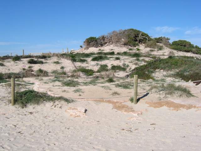 Küste und Düne etwa in höhe des Rest. Codol Foradat (an “der Burg” )