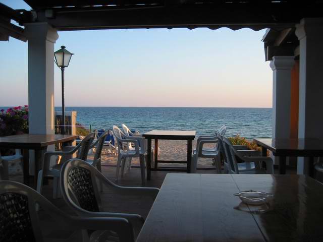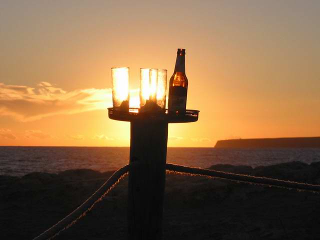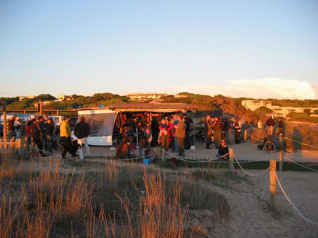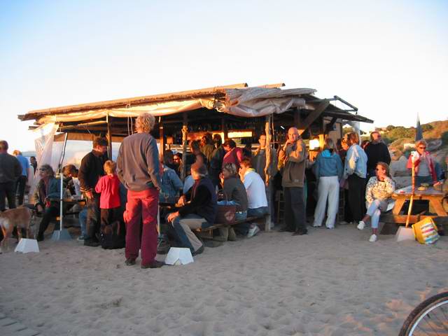 Sundown am Pirata, die letzten Touris+Insider genießen die wieder eingekehrte Inselruhe am letzten Abend der Saison 2004.....