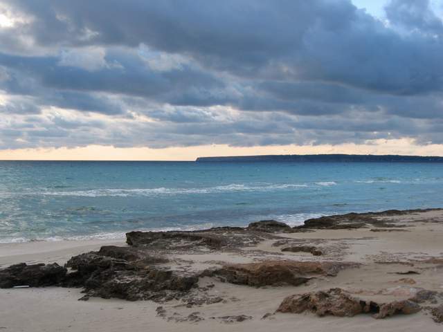 Strand Migjorn am Rest. Es Arenals im Winter und zum Vergleich im April/Mai