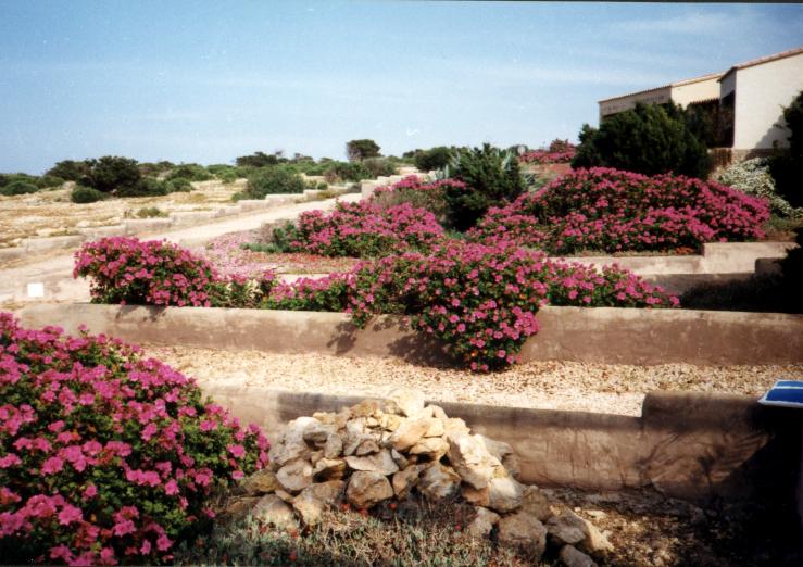 Landzunge mit Häusern und der gleichnamigen Ferienanlage Punta Prima. Die Ferienanlage Punta Prima mit einer (zumindest im Frühjahr) sehr gepflegten Außenanlage. Ein herrliches Blumenmeer tut sich hier auf. Die Anlage liegt oberhalb des “Epizentrums” von Es Pujols. Ein kleiner Naturweg durch die Klippen verbindet beide in einem 5 min. Fußmarsch. Von der Terrasse der P.P. Anlage hat man einen schönen Ausblick nach Pujols.Ich empfehle nach dem Betrachten dieser Seite, zur Vervollständigung des Inselabschnittes gleich zur Es Quintalar und Cala en Baster Seite wechseln. |