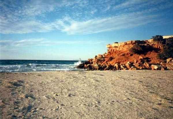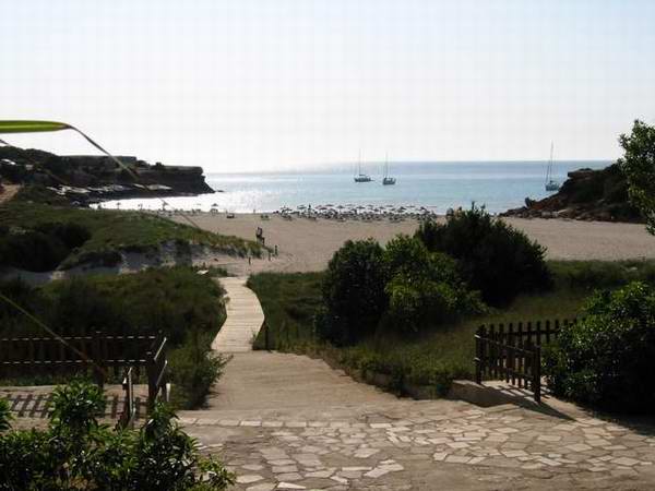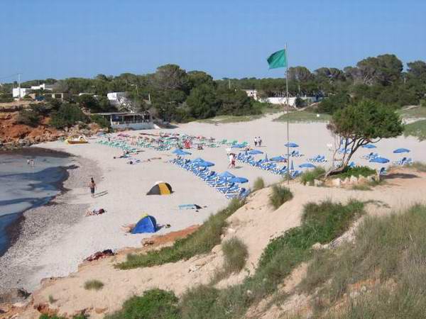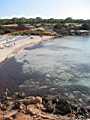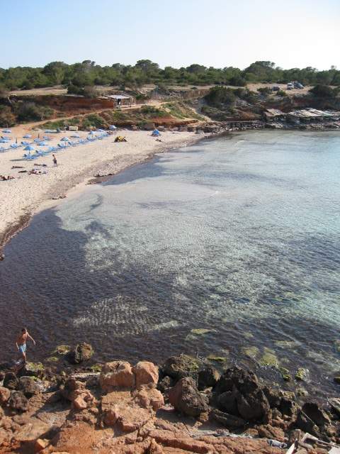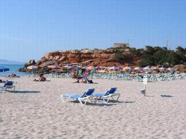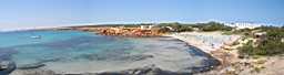 Im Westteil der Insel finden wir weitgehend unberührte Natur. Der vielleicht schönste, weil einzige, Strand hier ist die Cala Saona. Nur eine große Hotelanlage und einige Ferienhäuser gibt es hier. Einen kleinen Rundgang um diese herrliche Bucht gibt es auf den Bildern dieser Seite. |