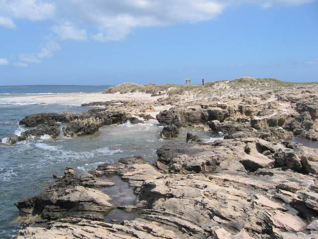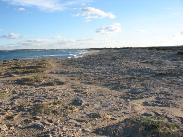 Es geht einfach immer geradeaus, rechts und links mal Strand mal Felsen. Keine Bäume einige kleine Sträucher sonst nichts.