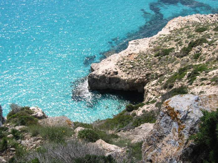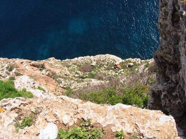 Zwischen den Felsen steil nach unten Fotografiert. Unten noch gerade erkennbar ein Auto (Tüv abgelaufen ;-)) ).