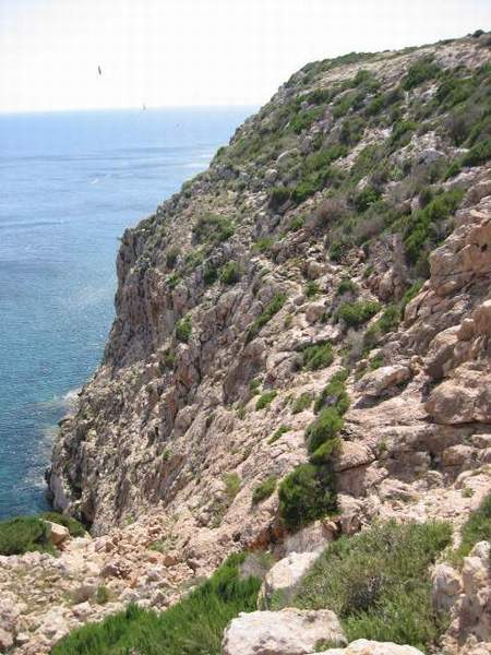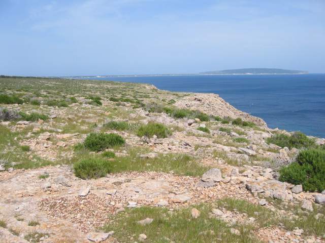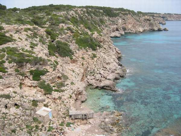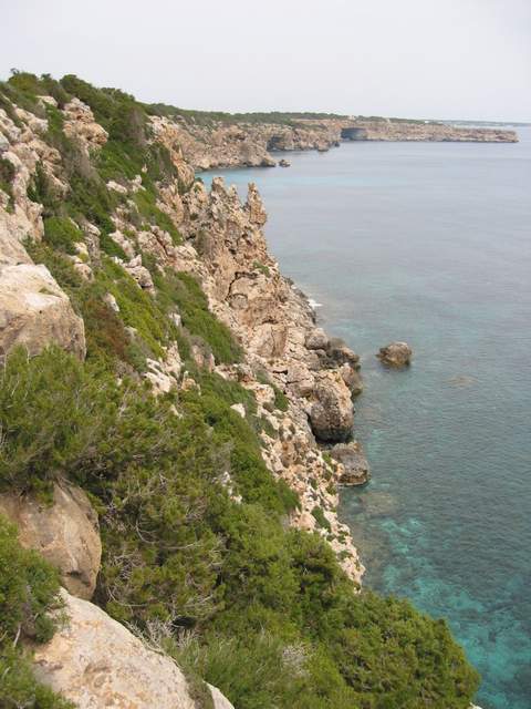 Der Küste entlang blickend, im Hintergrund Es Porxos / Es Corb Mari (s. Link oben)