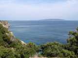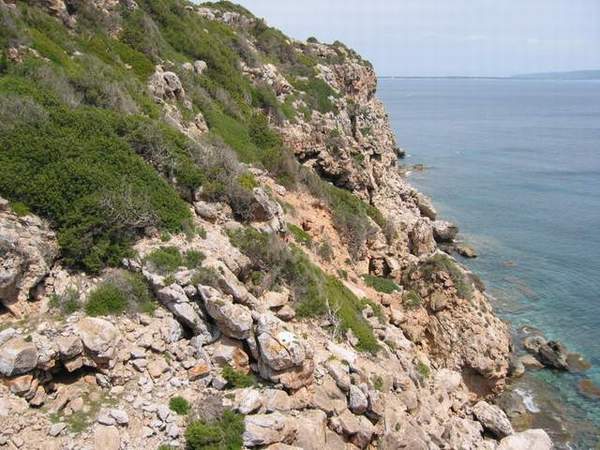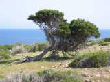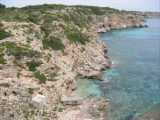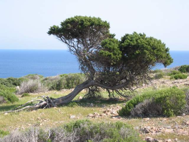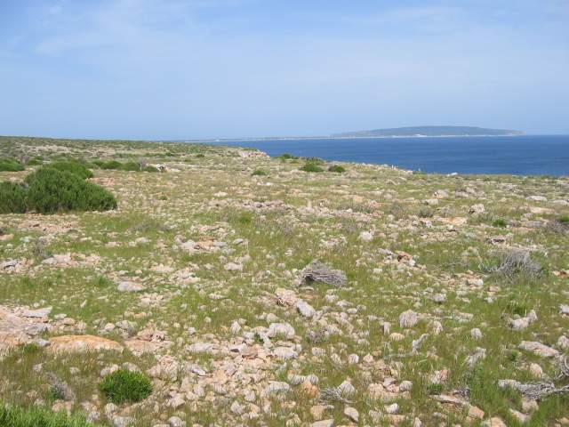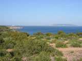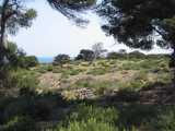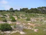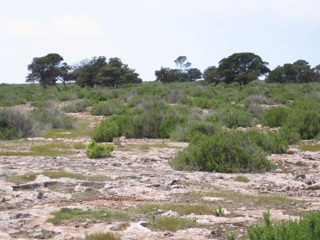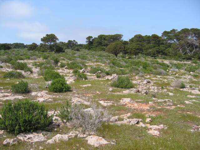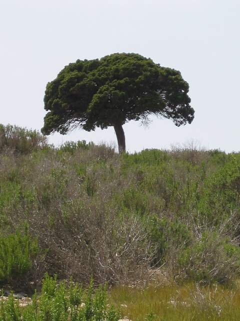 Hier endet der Baumbestand, Ziegen und Schafe verbeißen die Jungtriebe der Pinien und Sträucher. Nur noch Rosmarinbüsche und Gräser so weit das Auge reicht.