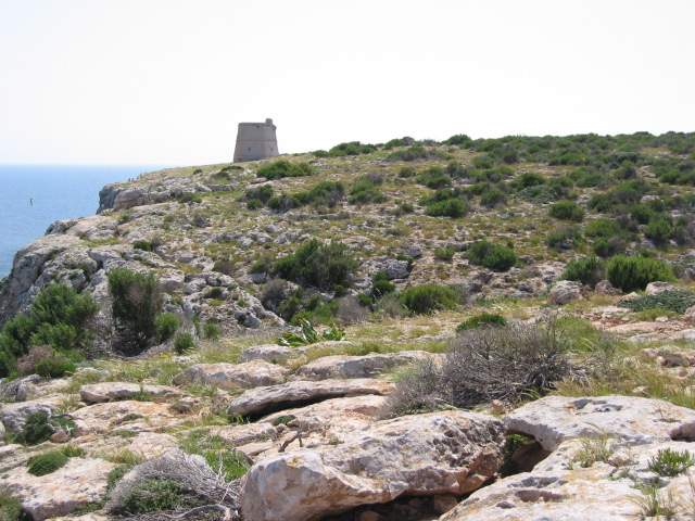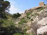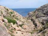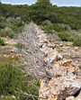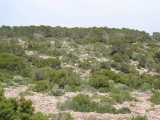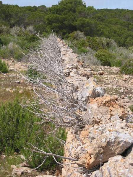 Langsam wird es Baumlos. Im mittleren Bild sieht man die Mauer “ Sa Tanca d´Alla Dins” welche quer über Barbaria führt und gegen verbiss durch die wilden Ziegen und Schafe schützen soll