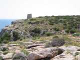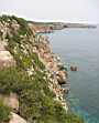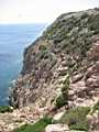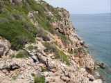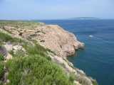 Auf den nahenden Sonnenuntergang gewartet. Die Felsen zeichnen sich langsam rot und die Schatten werden länger, Möwen kreischen über mir, unten zieht ein Fischerboot vorbei. Eidechsen