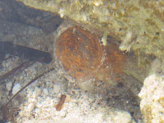 Ich vermute ein “Eiernest” eines Fisches. Sah aus wie Gelantine mit Kaviar, etwa Apfelsinen gross. Wer weiß es?