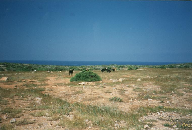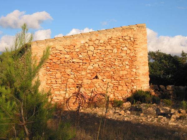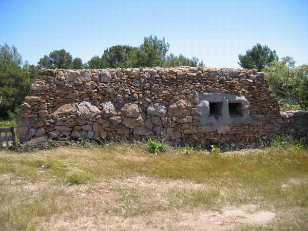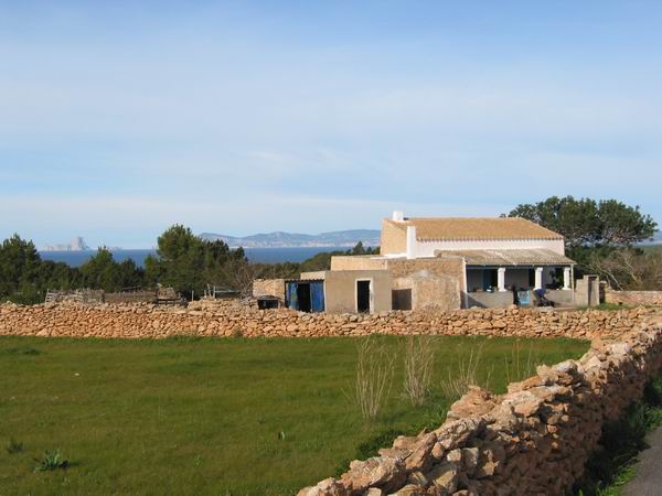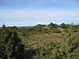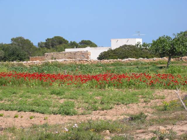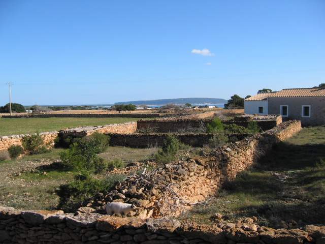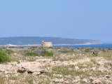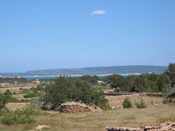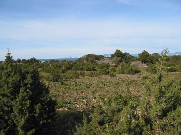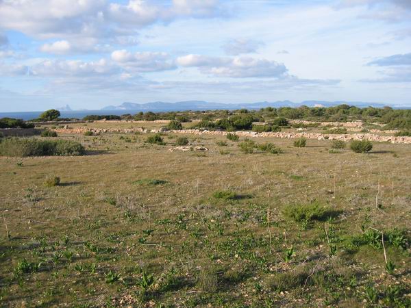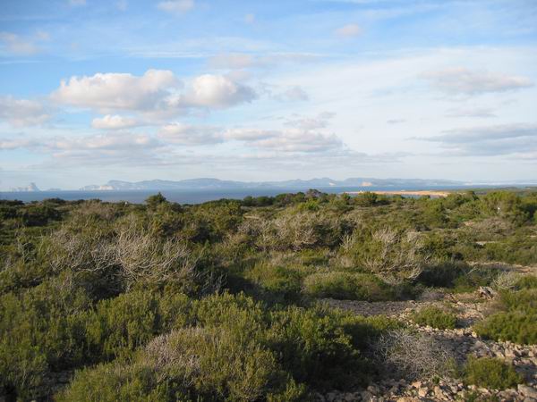 Blick in das Hinterland in Richtung Ibiza, verwaiste Felder und Buschwerk