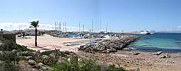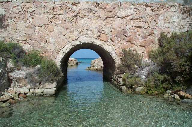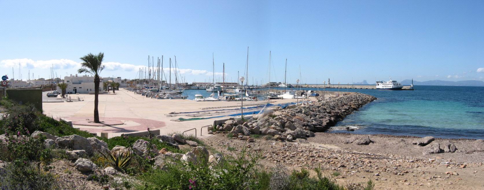Vom Steg des “Tiburon” nach links i.R. La Savina und rechts zur etwa 250 m entfernten Salzmühle.