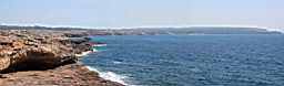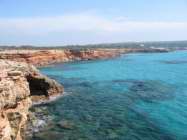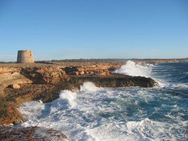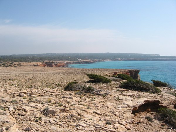 Den Wehrturm im Rücken in Richtung Cala Saona blickend. Panorama (117 kb)