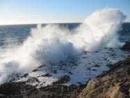 Ausgangspunkt ist der Wehrturm, hier gibt es bei hohem Seegang Motivebis der Akku glüht. Ich schätze, dass die Wellen locker 10 m ihre Gischt in den Himmel schmeißen. Bei dem Bild oben